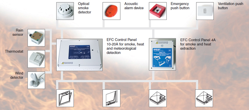 EFC CONTROL PANELS to control groups of actuators for smoke, heat extraction and ventilation
